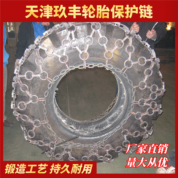 輪胎保護(hù)鏈?zhǔn)前惭b在輪式裝載機(jī),重型載重汽車等輪式工程機(jī)械上,用于輪胎的使用壽命,減少輪胎維護(hù)換工作,施工費(fèi)用,加快工程施工進(jìn)度,目前輪胎保護(hù)鏈用于,采石場,采礦場,隧道施工,筑路,筑壩施工的作用。適應(yīng)惡劣的施工環(huán)境。輪胎保護(hù)鏈?zhǔn)遣捎脟鴥?nèi)外先進(jìn)生產(chǎn)工藝,利用優(yōu)質(zhì)合金鋼材料,經(jīng)精密鑄造,高強(qiáng)度全自動閃光對焊,編結(jié)構(gòu)合理,利用特殊焊接工藝焊接而成的一種輪胎保護(hù)設(shè)備